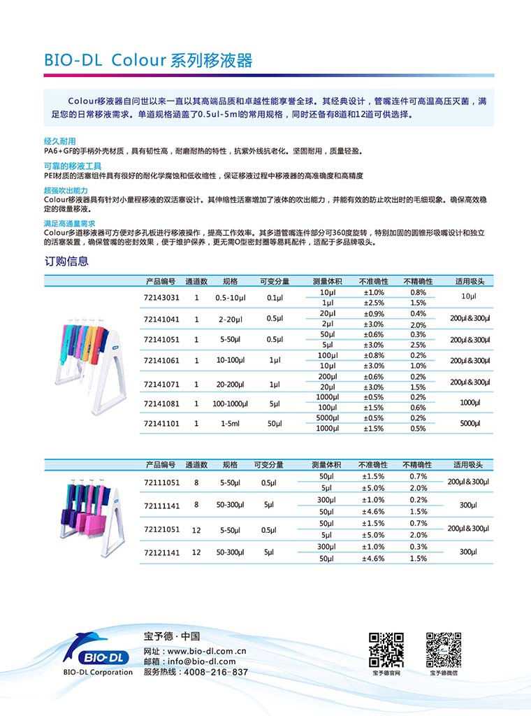 BIO-DL寶予德Colour彩色移液器