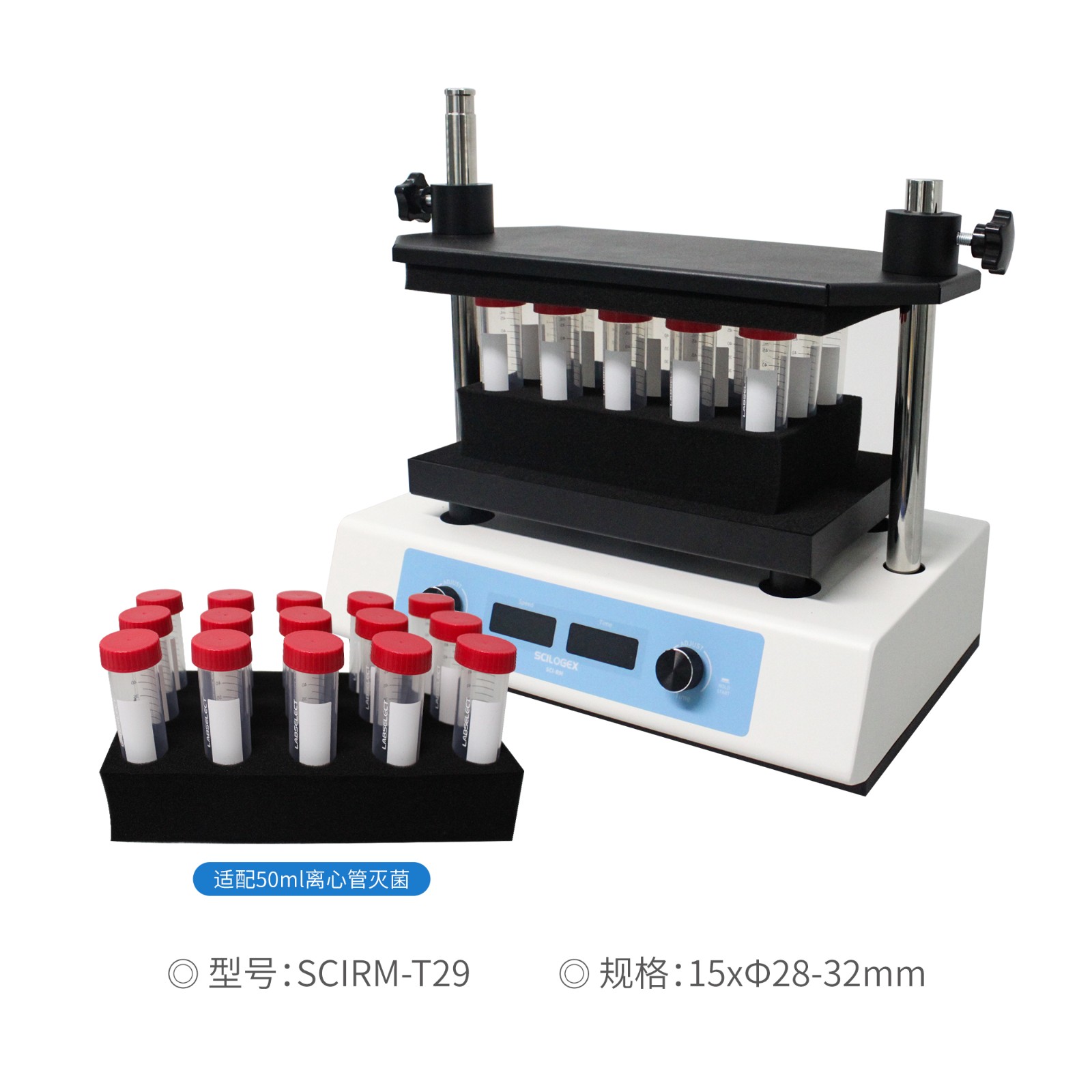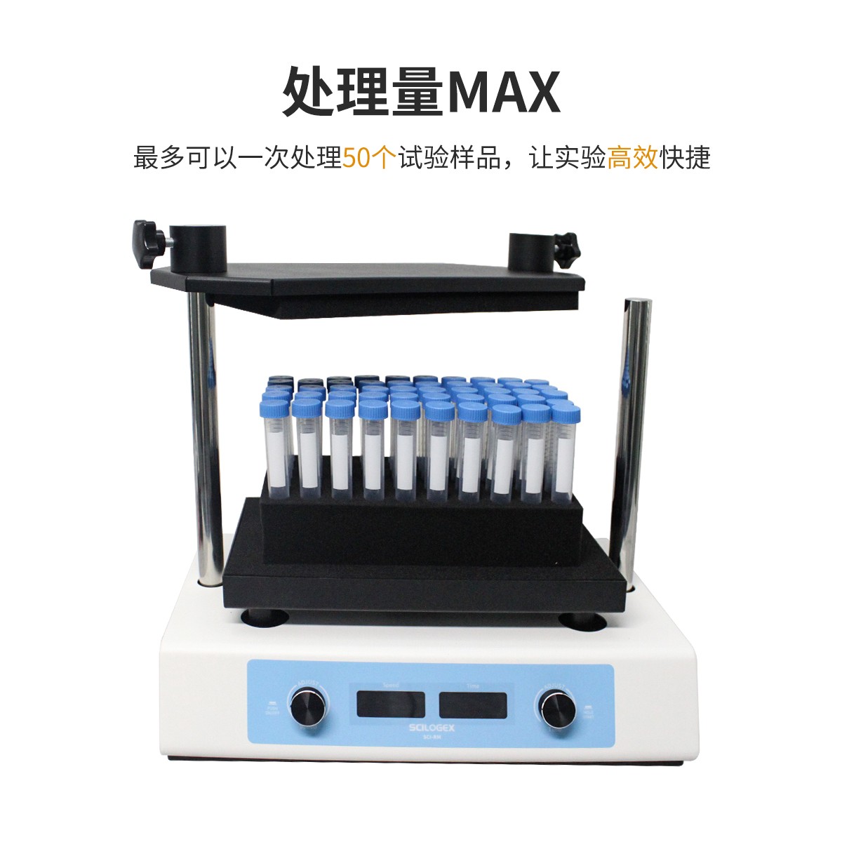 Scilogex賽洛捷克SCI-RM多管渦旋混勻儀,操作面板簡潔,Led實時顯示時間和速度,一鍵旋鈕,一次可處理50個不同類型的樣品,讓實驗更高效快捷。
